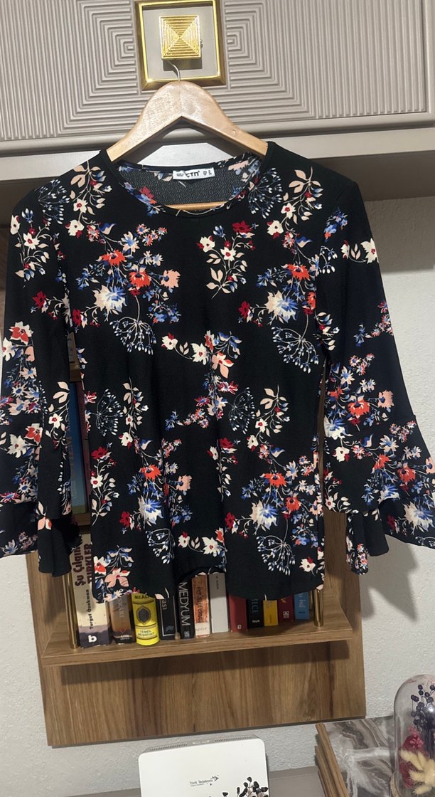 Çiçek desenli, uzun kollu ve fırfırlı detaylı kadın bluzudur. Salaş kesim ve yuvarlak yaka ile bohem tarzını yansıtır. Kumaşı yumuşak tekstil, boyu normal ve midi arasında.