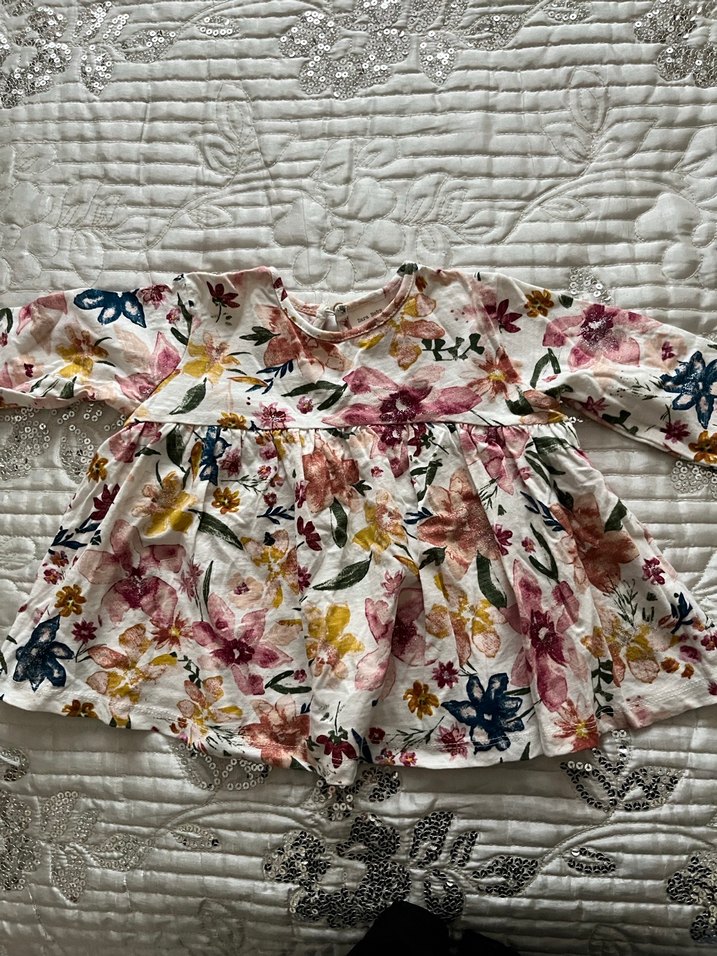 Çiçek desenli, bol kesim kız elbisesi. Uzun kollu ve tekne yaka, hafif canlı renklerde bohem tarzda tasarlanmıştır.