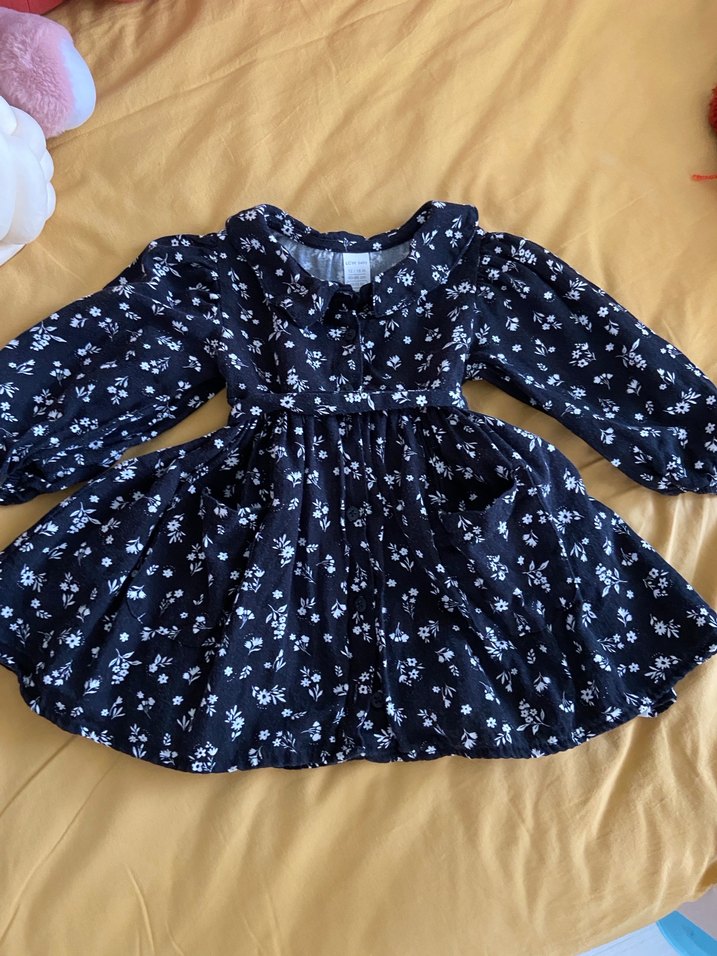 Uzun kollu, düğmeli ve yakalı, bol kesim kız elbisesi. Koyu zemin üzerinde çiçek desenleri bulunur. Pamuklu yumuşak kumaştan üretilmiştir. Lcw kız bebek elbise bir kere giyildi temiz defosuz ve lekesizdir 12/18 ay kumaşı çok ince değildir hem kış hem ilkbahar için daha uygun bir ürün