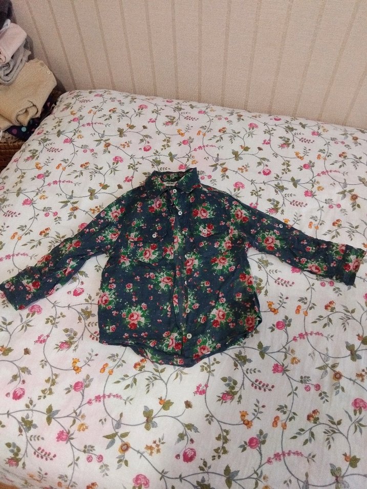 Çiçek Desenli Uzun Kollu Kız Gömleği