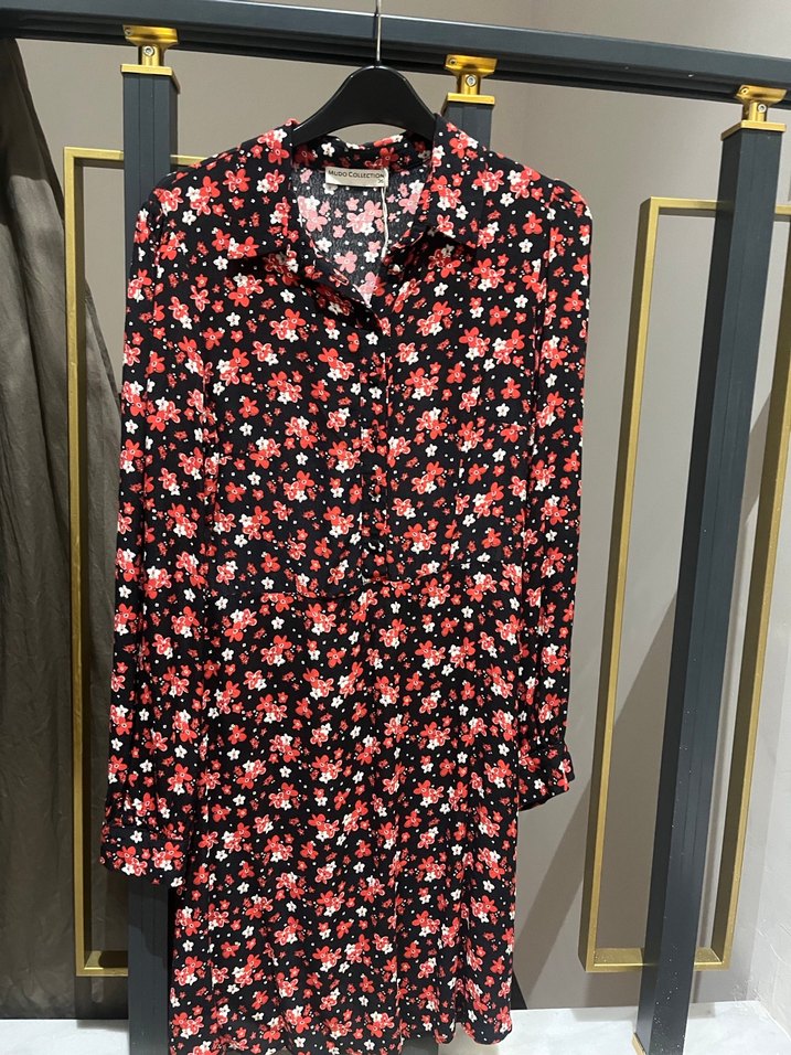 Çiçek Desenli Uzun Kollu Midi Kadın Gömlek