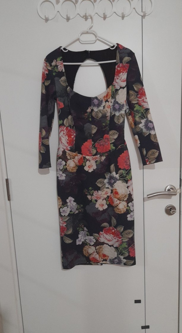 V yaka ve uzun kollu, çiçek desenli, bohem tarzda, vintage dokunuşlu uzun ve dar kesim elbise. Romantik akşamlar için idealdir.