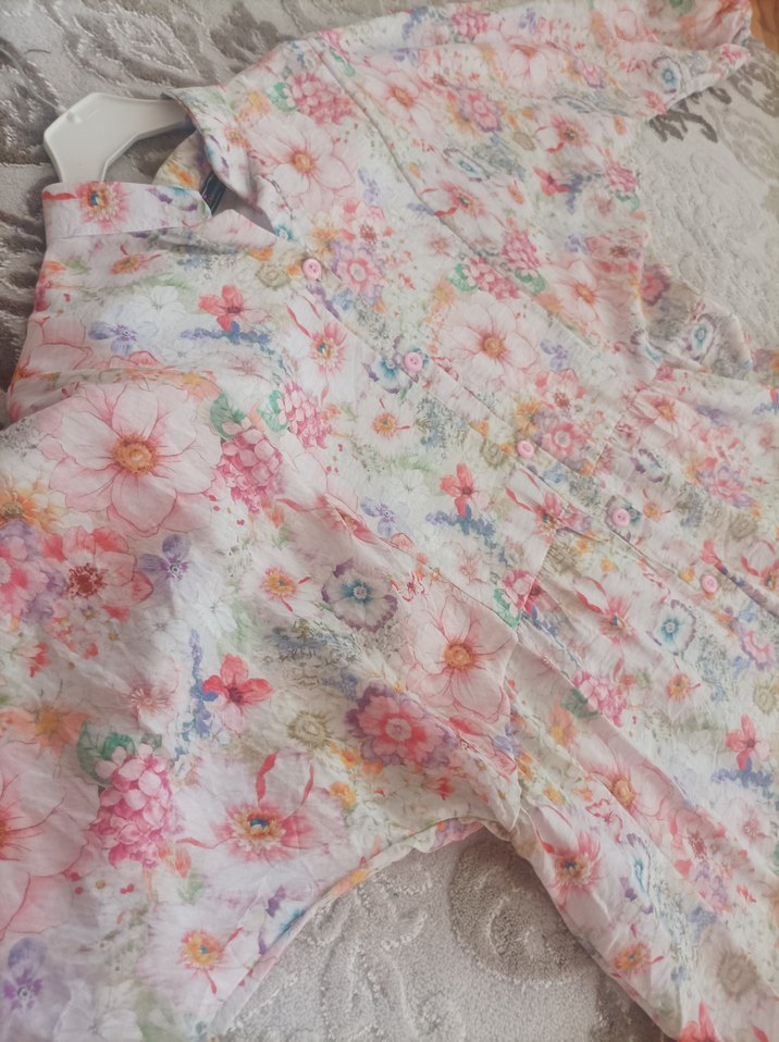 S-M-L-XL bendenleri bulunuyor Modal Keten kumaştan, bol kesim, uzun kollu ve tekne yaka uzun elbise. Pastel çiçekli desen ve fırfır detaylarıyla bohem tarzını yansıtıyor.