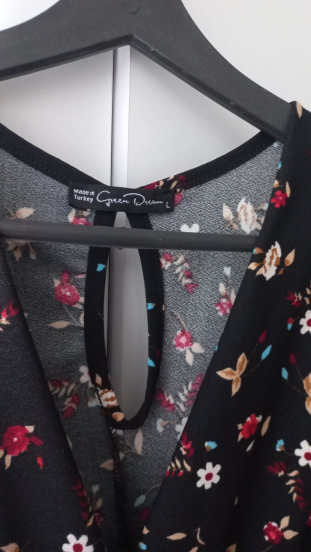 Siyah cicek desenli v yaka cep detayli tulum Çok rahattır yazlıktır iç belli etmez L bedendir