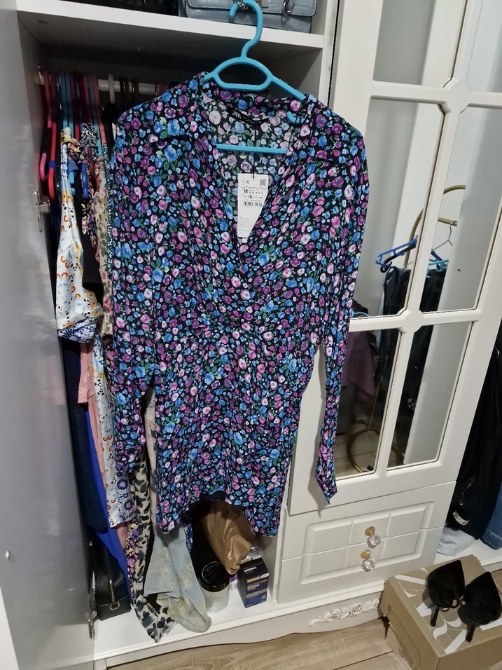 . Çok renkli çiçek desenli ve V yakalıdır. Günlük kullanım için yumuşak sentetik kumaştan üretilmiştir.