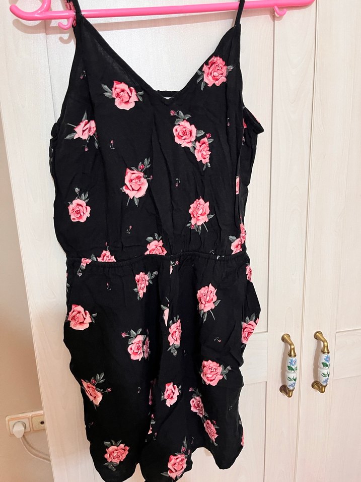 Çiçek Desenli V Yaka Kadın Tulum