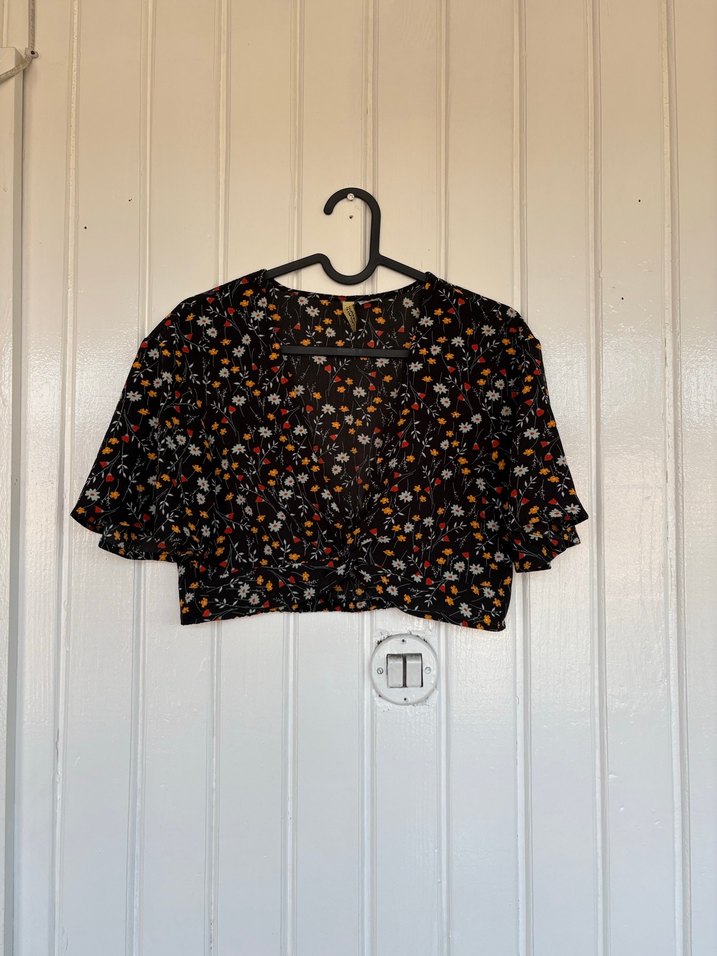 Çiçek Desenli V Yaka Kısa Bluz