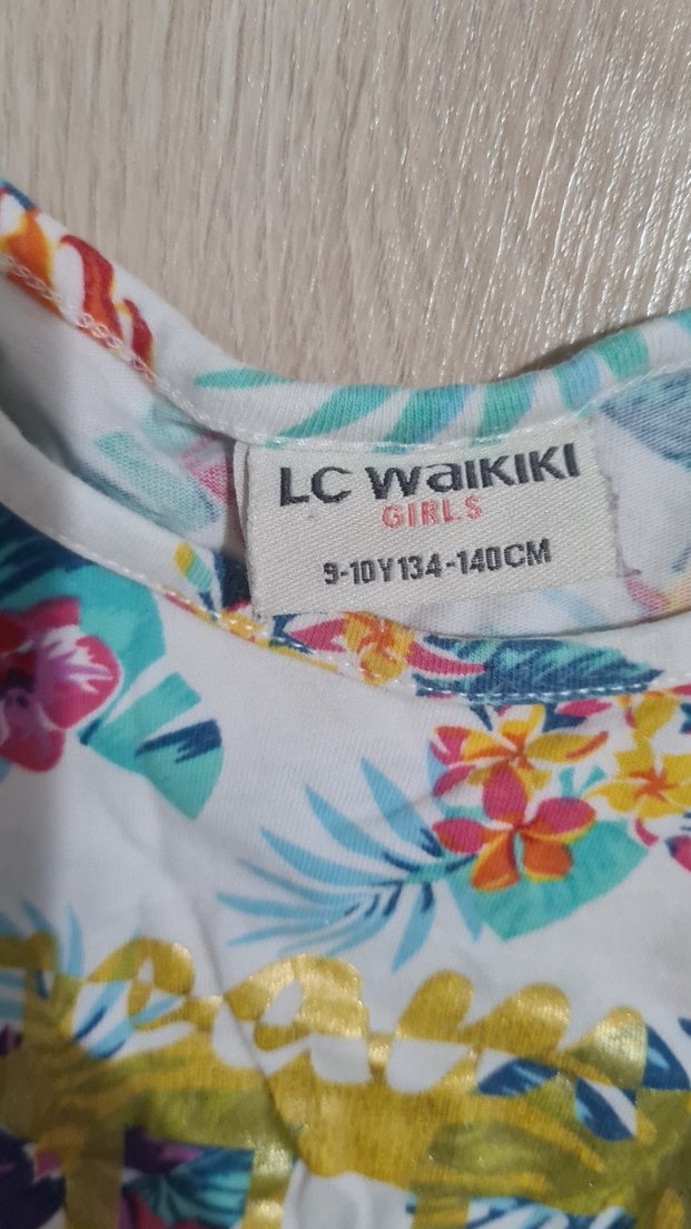 Çiçek desenli, kısa kollu, bol kesim kız tişörtü. V yaka ve çok renkli tasarımıyla bohem tarzını yansıtır.