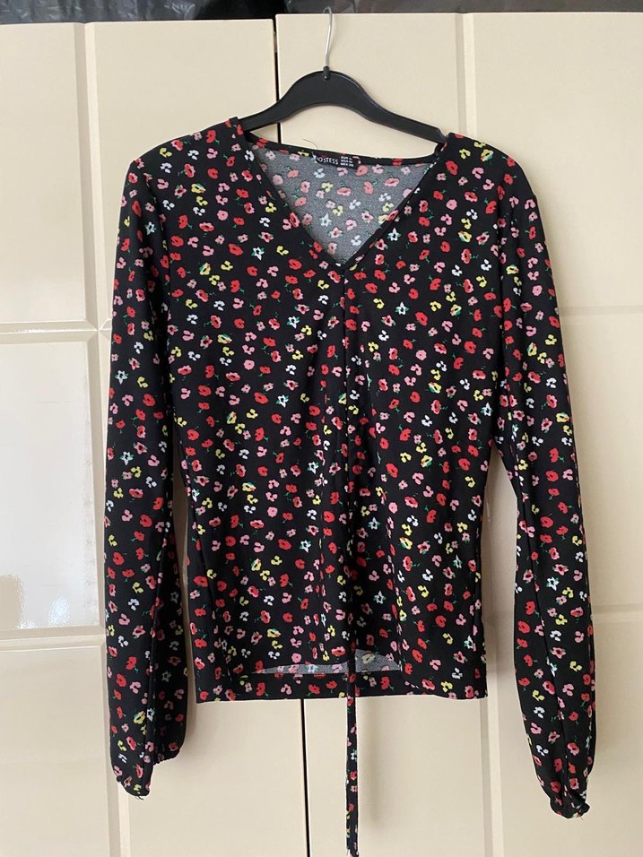 Çiçek Desenli V Yaka Uzun Kollu Bluz