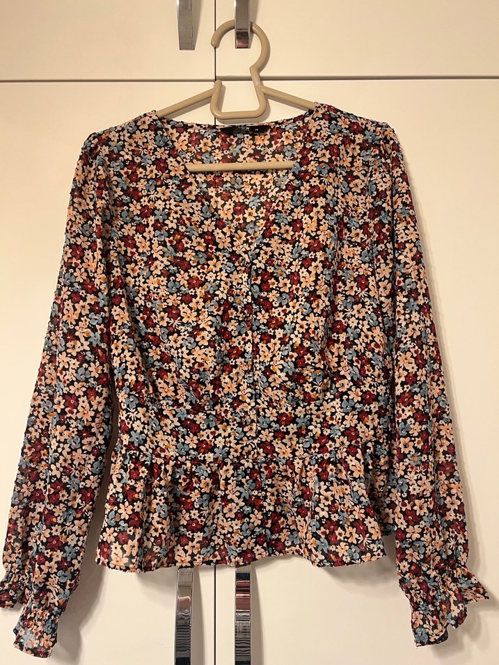 Çiçek Desenli V Yaka Uzun Kollu Bluz