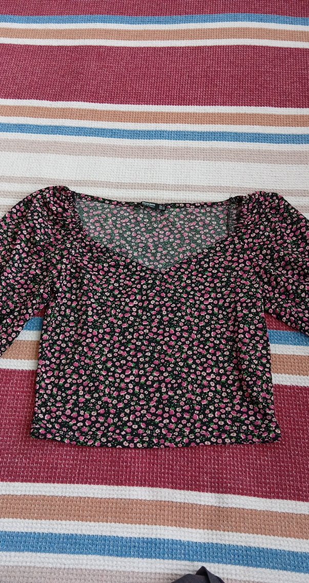 V yaka ve uzun kollu, çiçek desenli kadın bluz. Yumuşak sentetik kumaştan, düğmeli ve midi boyda, sıcak ve bohem tarzda sokak giyimine uygun.