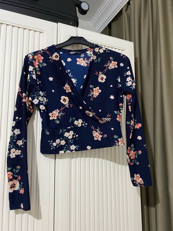 Çiçek Desenli V Yakalı Uzun Kollu Bluz