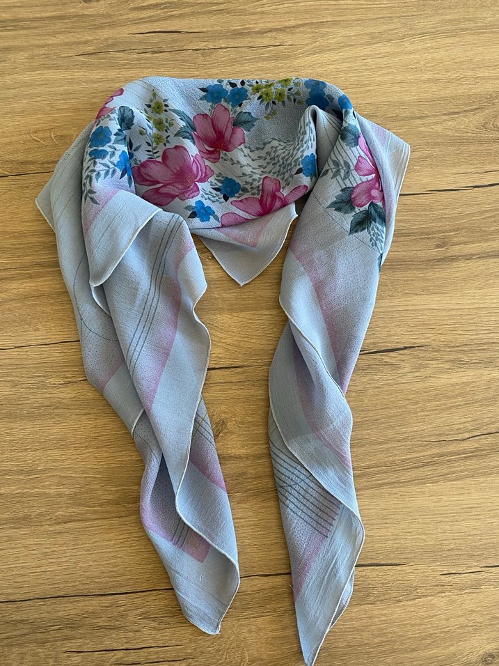 Bir kaç kez kullanıldı. Temiz, ölçü detay fotoğraf ta var. Sadece çok küçük bir yerde belli belirsiz bir deforme var ip çekilmesi gibi son fotoğraf ta var, kullanıma engel değil. İnceleyebilirsiniz. Pastel tonlarda çok renkli, çiçek desenli ve drapeli vintage tarzda kadın fular. Yumuşak tekstil malzemeden üretilmiştir ve retro bir hava katar. #eşarp #fular #aksesuar #takı #kadıngiyim #çanta #yeni #indirim #kampanya
