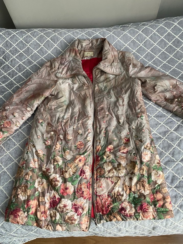 Bej renkte, fermuarlı, çiçek desenli, bol kesim, uzun kollu, yakalı midi uzunlukta bohem tarzda kadın ceketi. Orijinaldir çok çok uyguna bırakıyorum