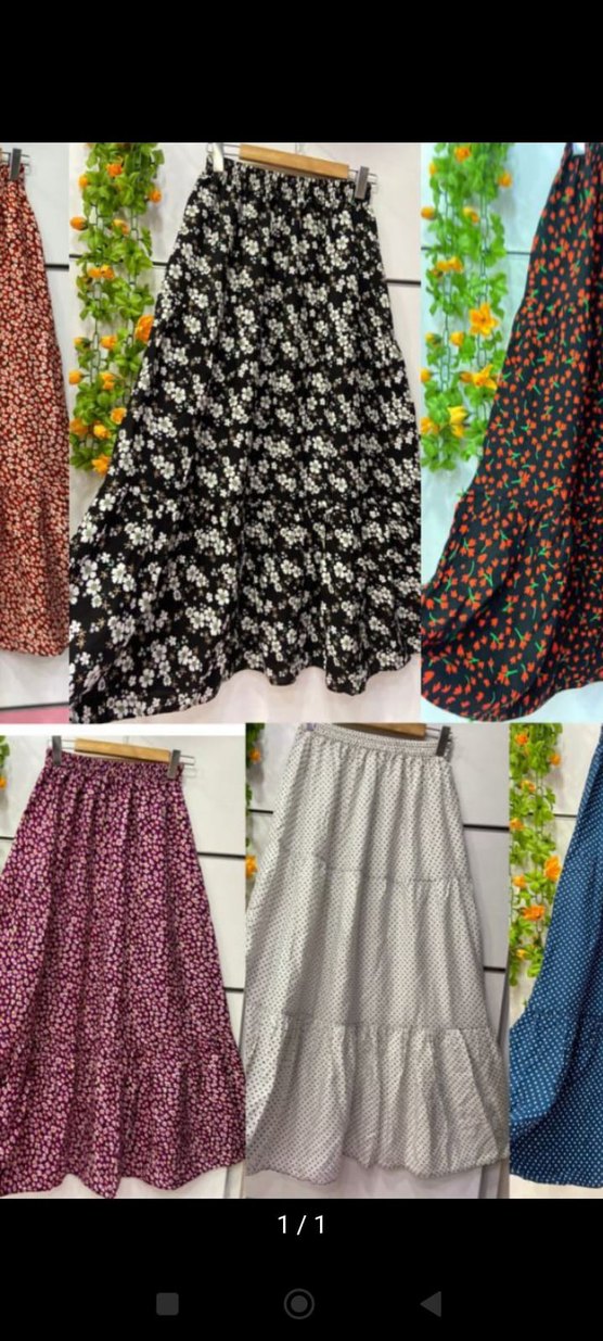 Çiçek desenli, fırfırlı ve bol kesimli uzun kadın eteği. Yumuşak sentetik kumaştan yapılmış, günlük kullanım için bohem tarzına uygundur.