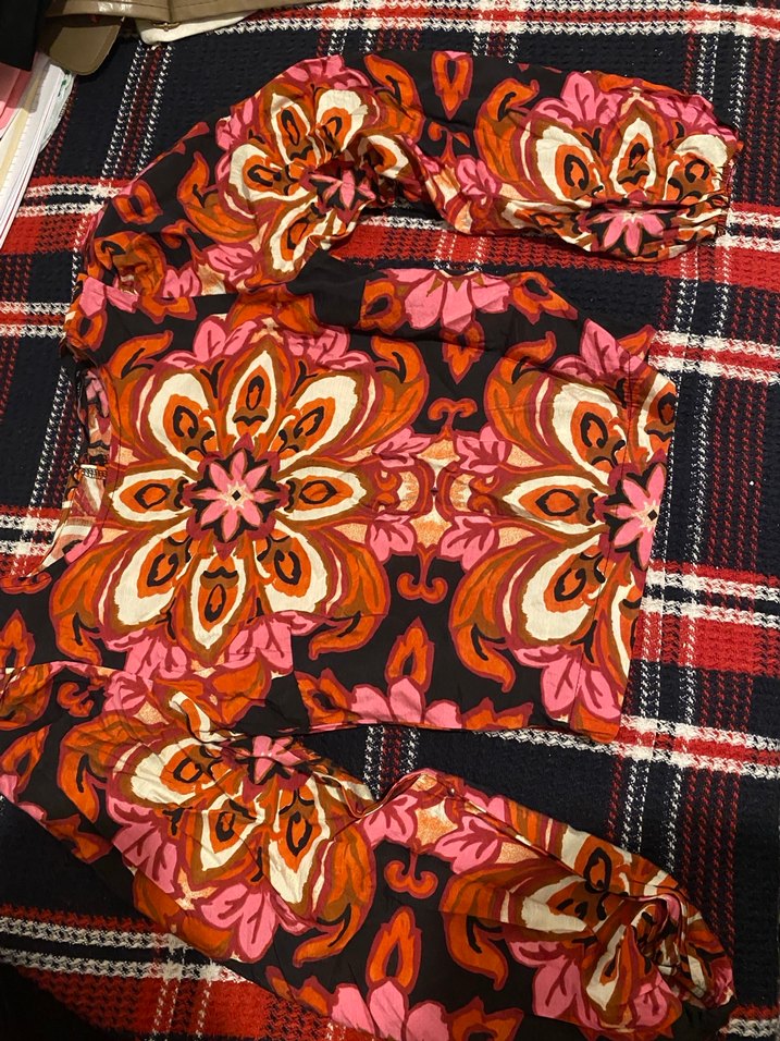 Çiçek desenli, volan detaylı, yumuşak dokulu tekstil kumaştan yapılmış bohem tarzda kadın bluz.