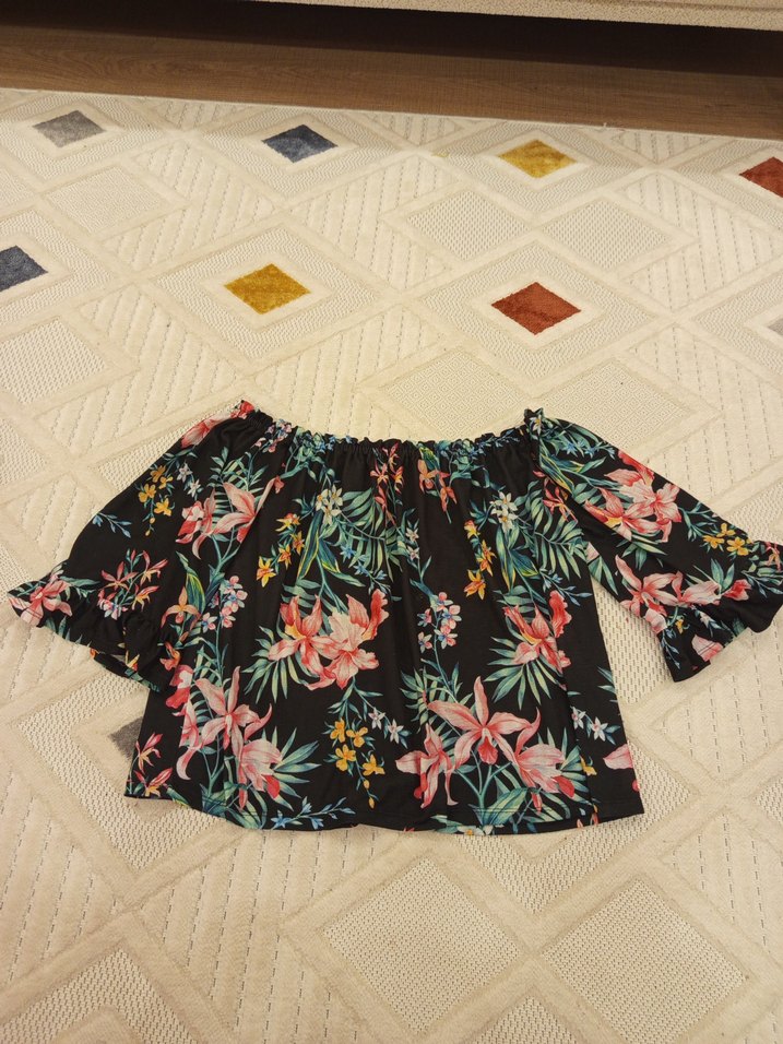 Çiçek Desenli Volanlı Kayık Yaka Bluz