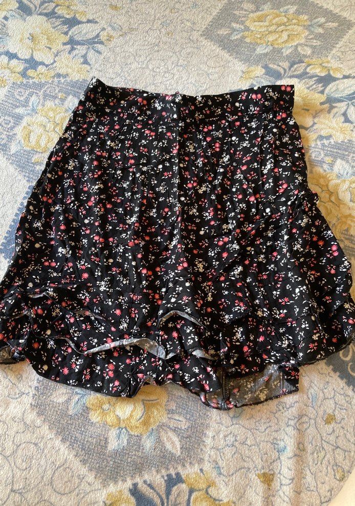 Sentetik kumaştan, volan detaylı, çiçek desenli ve bol kesim mini etek. Bohem ve retro tarzlara uygun, dış mekan kullanımı için ideal. 1 kez giyildi .