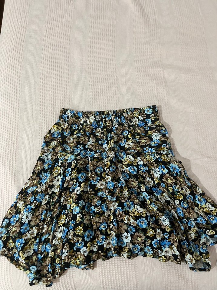 Bohem tarzda, volan detaylı ve koyu çok renkli çiçek desenli, bol kesim mini etek S-M beden uyumlu hic giymedim ütüleyince daha da güzel duruyor suan ütüsüz
