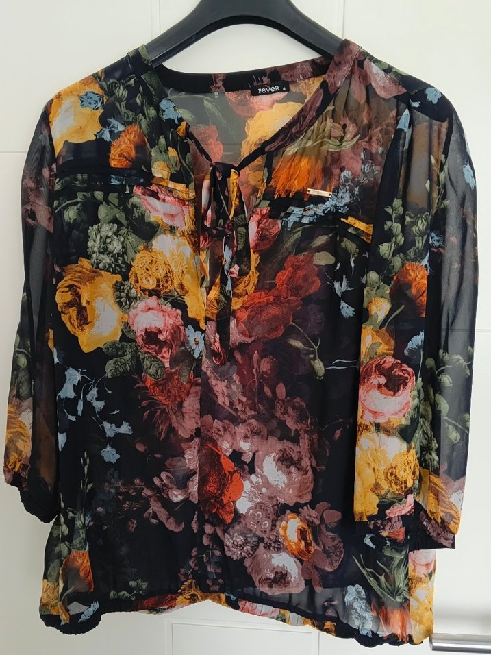 Çiçek desenli, yarım kollu (dirsek altı), bol kesim bluz. Yumuşak sentetik kumaştan, şık şifon bluz.