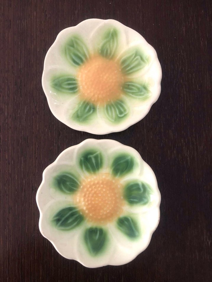 Bu sunumluk seti, yeşil ve sarı tonlarda renkli çiçek desenine sahip, klasik tarzda iki adet dalgalı kenarlı sınımluktan oluşur.