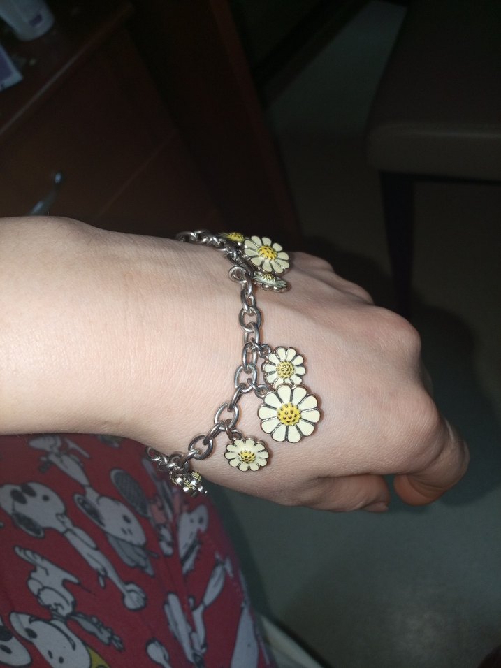 Renkli sarı çiçek figürlü zincir detaylı bileklik, vintage ve bohem tarzını yansıtır, günlük kullanım için uygundur.