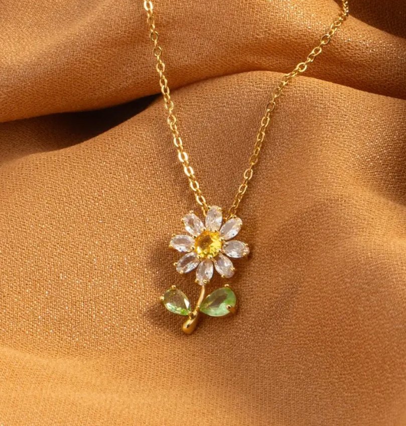 Çiçek Detaylı Altın Renkli Midi Kolye