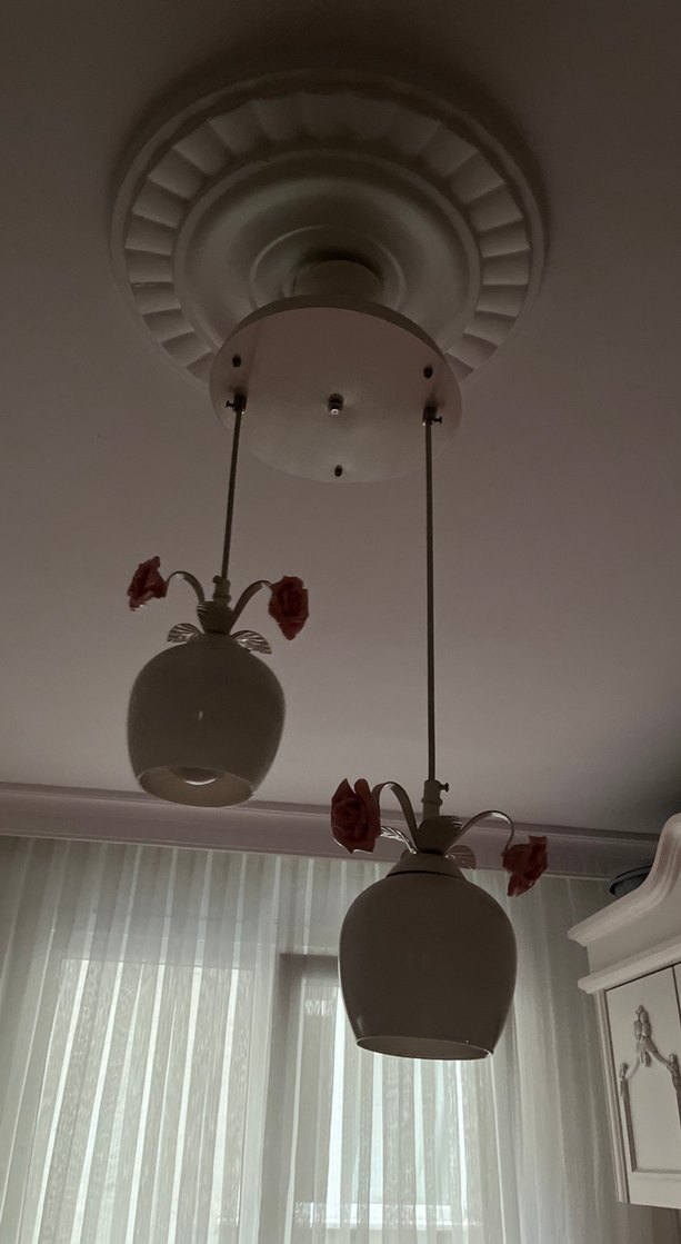 Çiçek Detaylı Beyaz İkili Avize