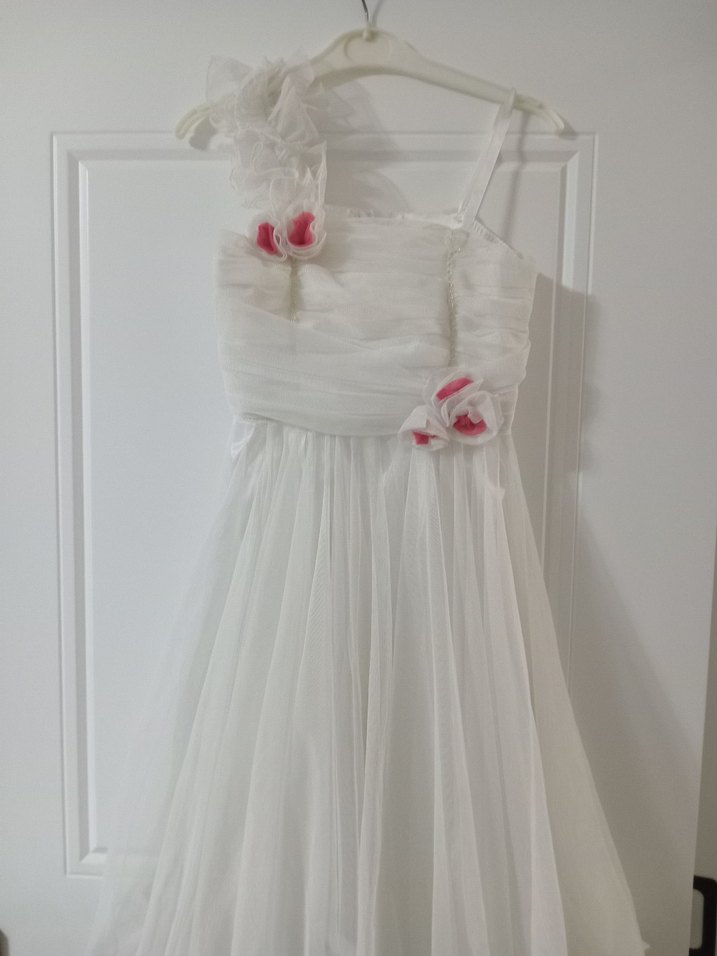 Çiçek Detaylı Beyaz Kız Çocuk Abiye Elbise