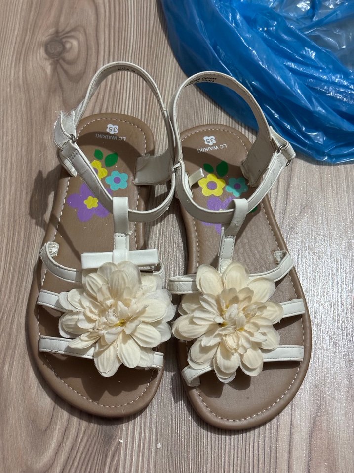Çiçek Detaylı Beyaz Kız Sandalet