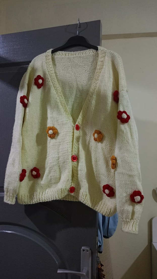 Çiçek Detaylı Beyaz Örgü Hırka giyilmedi