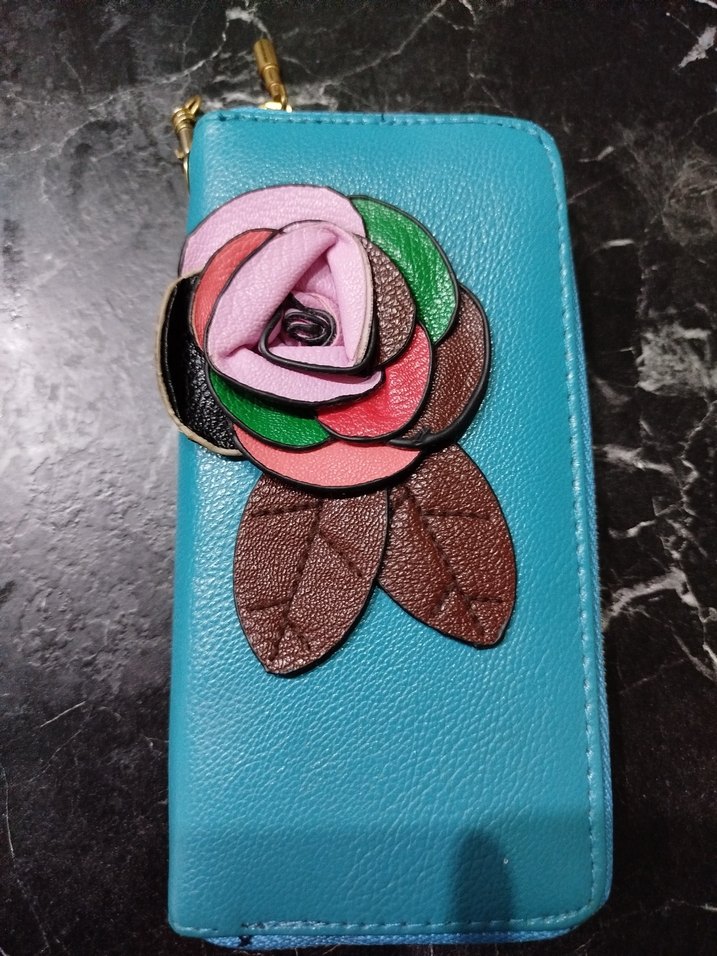 Çiçek detaylı, renkli deri kadın cüzdanı, fermuarlı ve bohem tarzda, günlük kullanım için uygun. #cüzdan #kadıncüzdan #dericüzdan