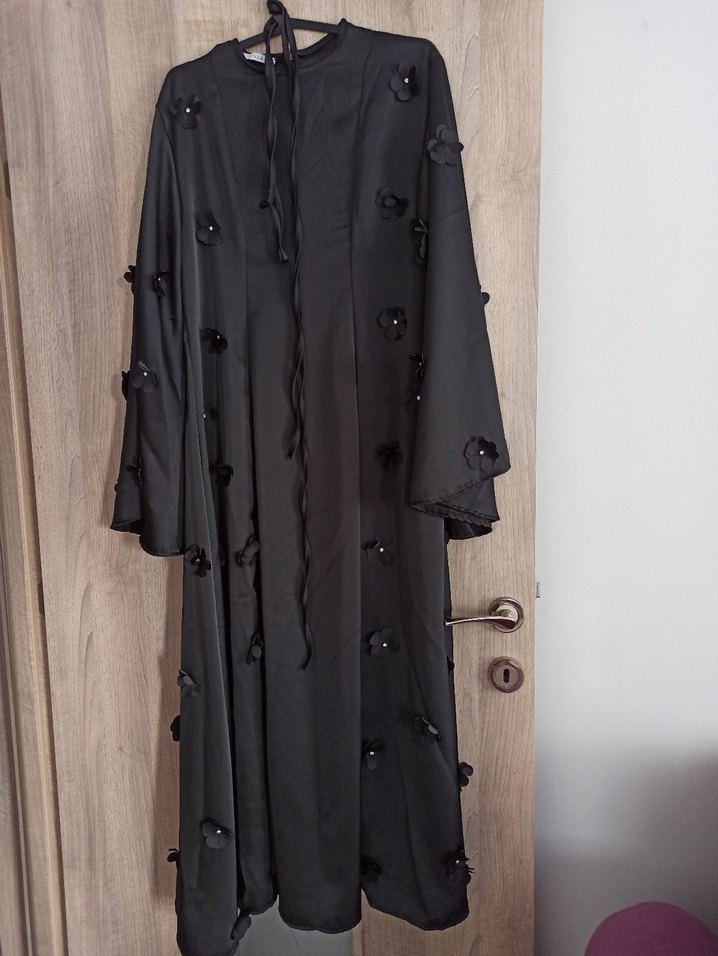 Nakışlı çiçek detaylarıyla siyah uzun elbise ürün sıfırdır hiç giyilmedi etiketi mevcut değil pazarlık payı vardır