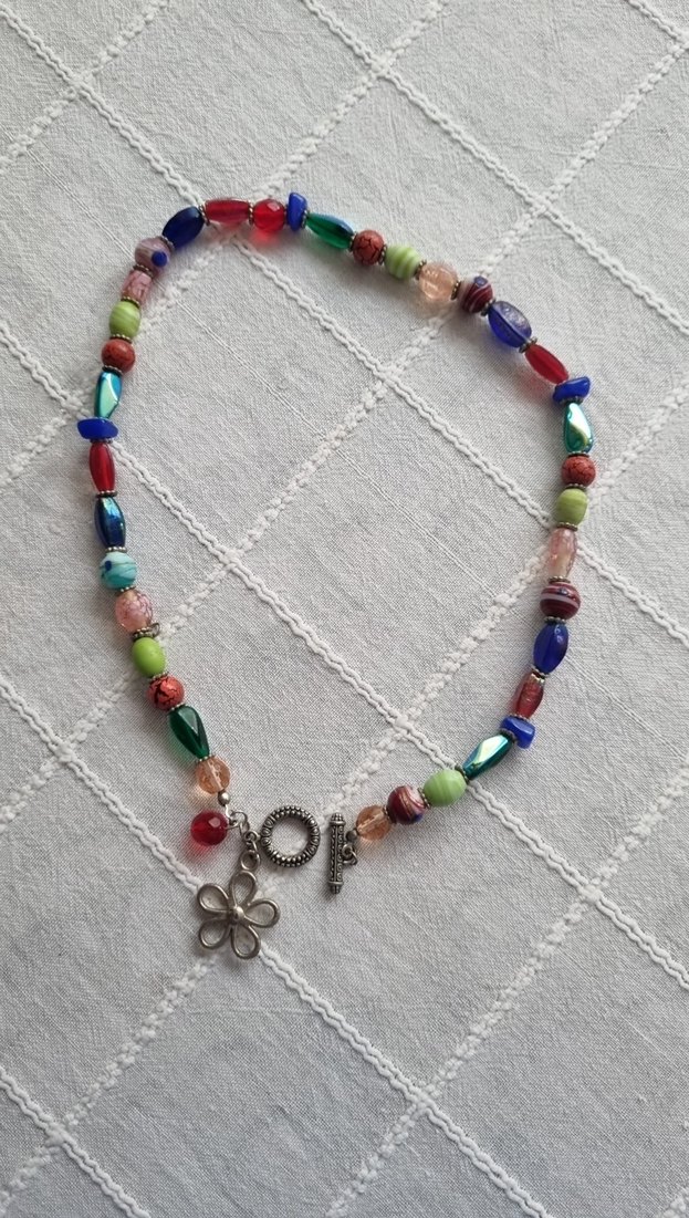 Çiçek Figürlü Renkli Boncuklu Midi Kolye