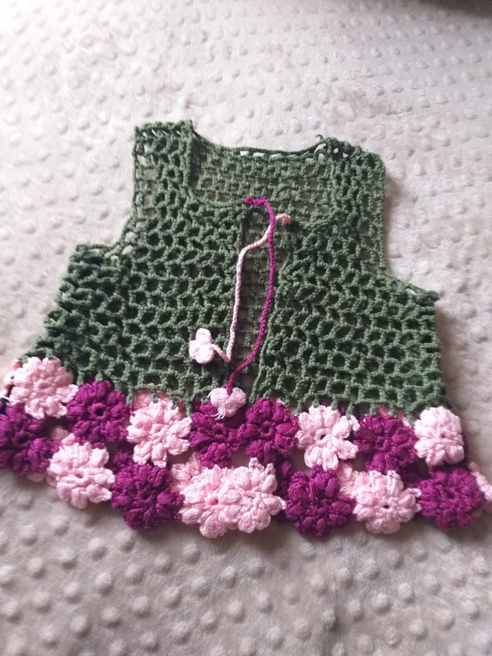 Renkli işlemeli çiçek desenli, bol kesim triko yelek. Bisiklet yaka ve kolsuz tasarımıyla bohem tarzını yansıtır.iki kol arası 29 santim boy 33 santim