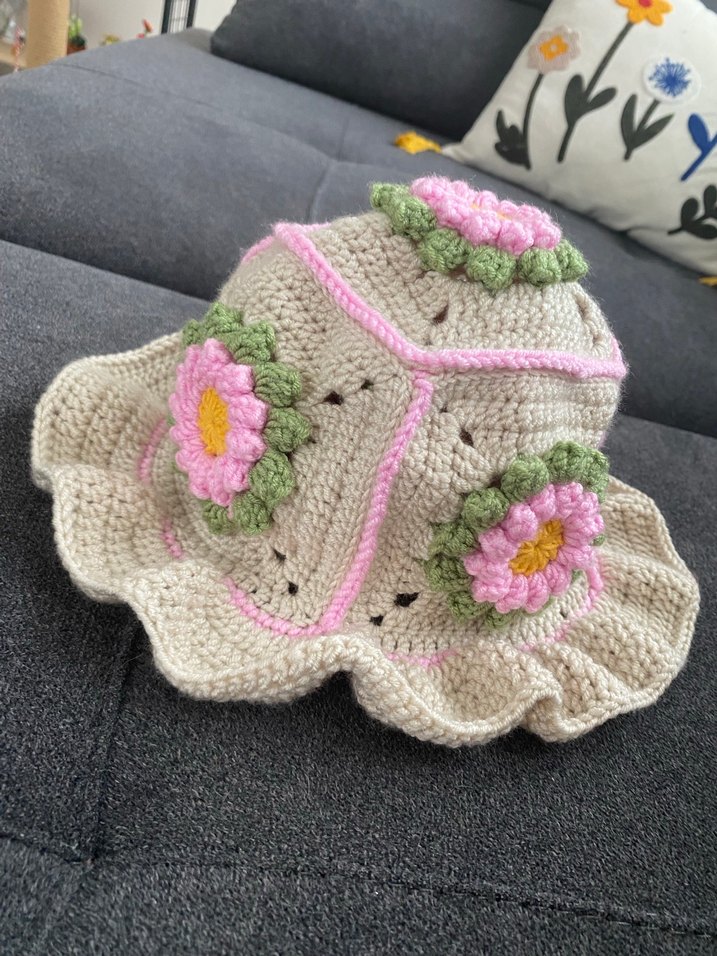 Çiçek İşlemeli Bohem Örgü kız çocuk Şapka