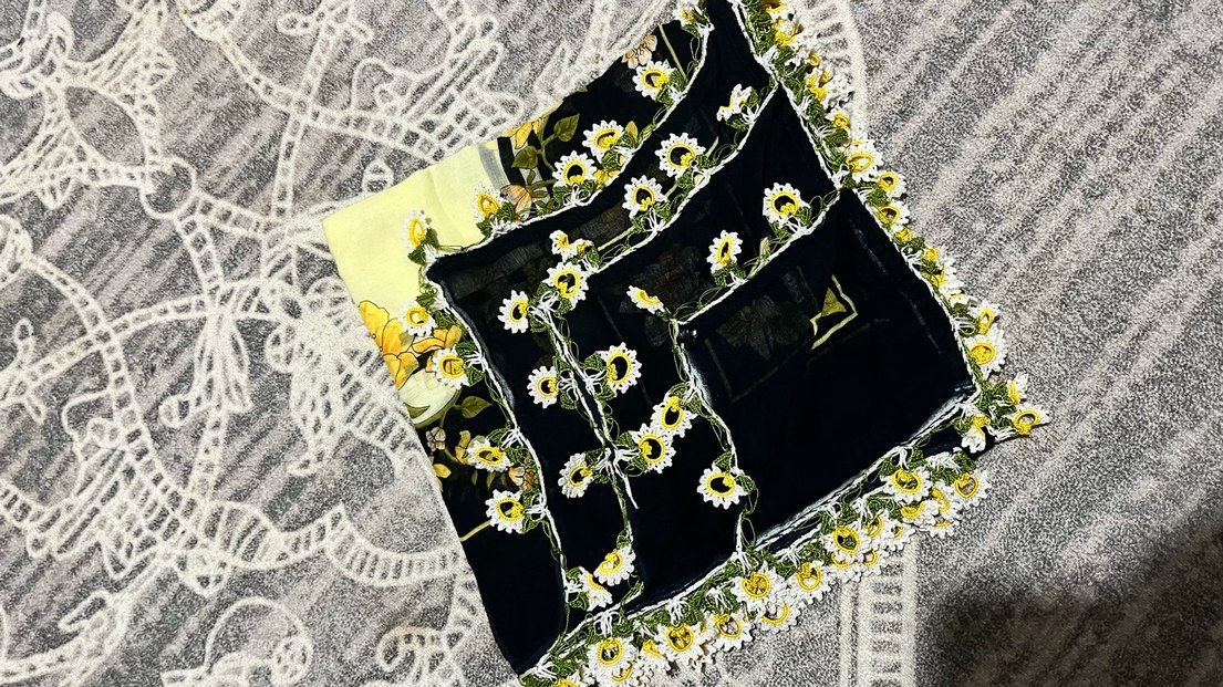 Çiçek İşlemeli Dantel Detaylı Bohem Kadın Şal