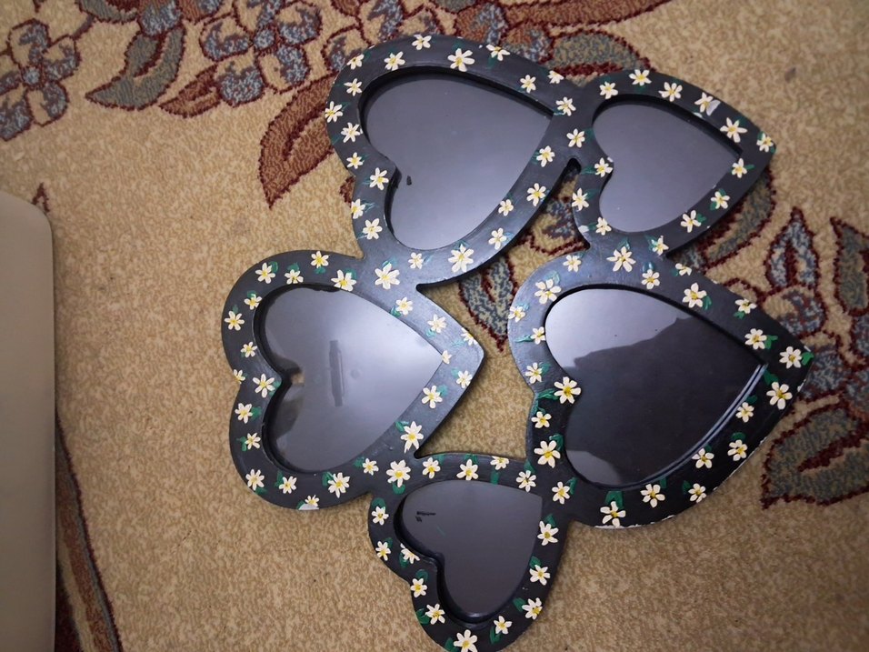 Koyu renk camlı, çerçevesi çiçek desenli kalp şeklinde çerçeve Bohem retro tarzda bir aksesuar. ele emeği