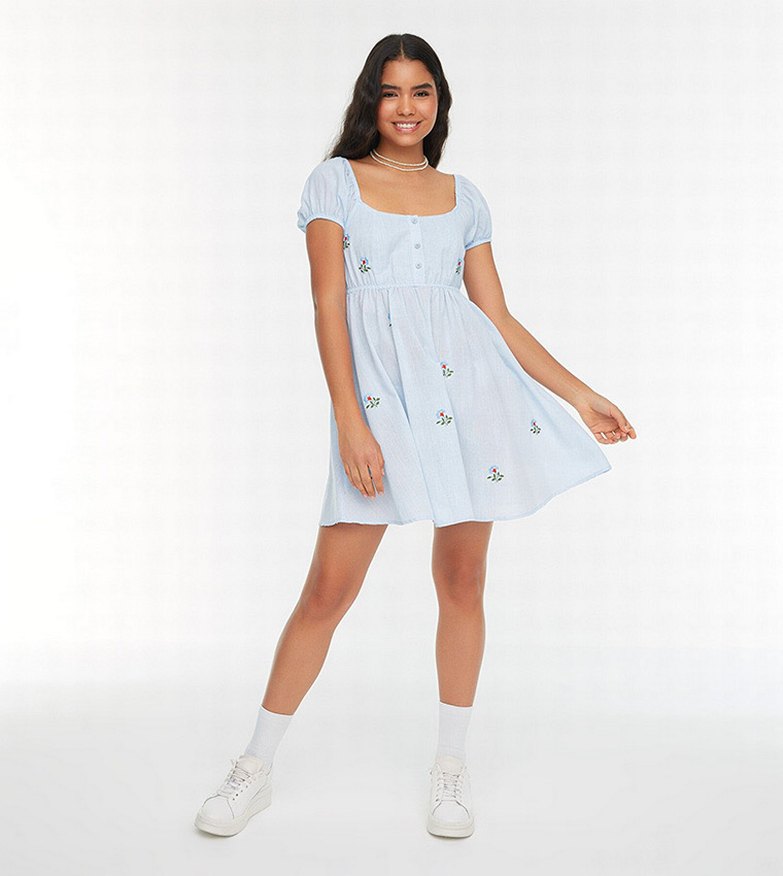 Çiçek işlemeli keten elbise