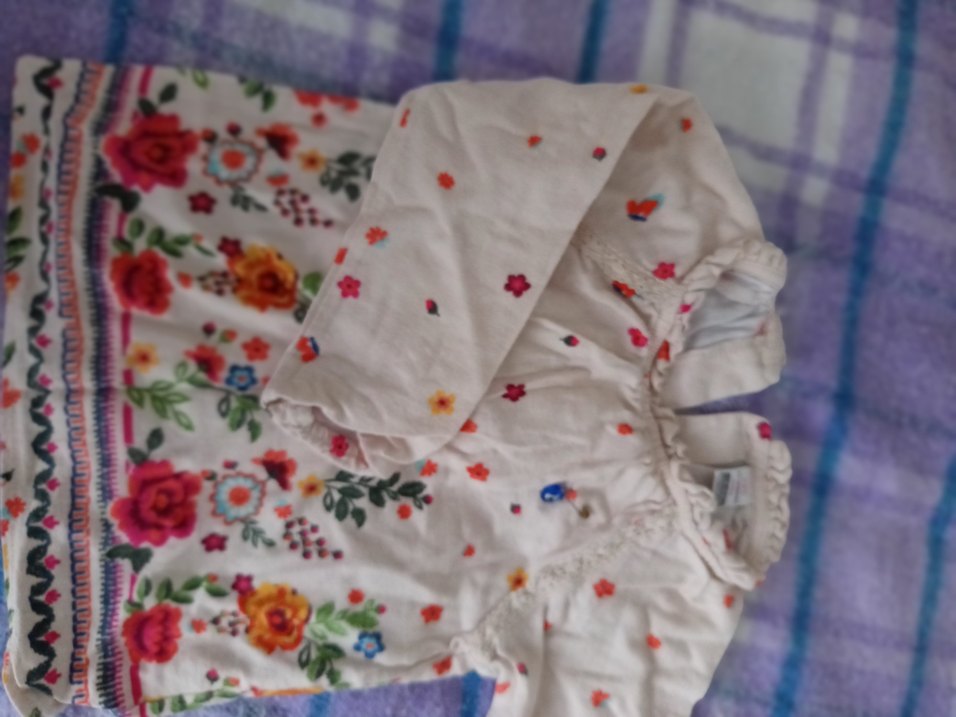 Çok renkli küçük çiçek işlemeli, uzun kollu ve fırfırlı. Yumuşak tekstil kumaştan üretilmiştir.
