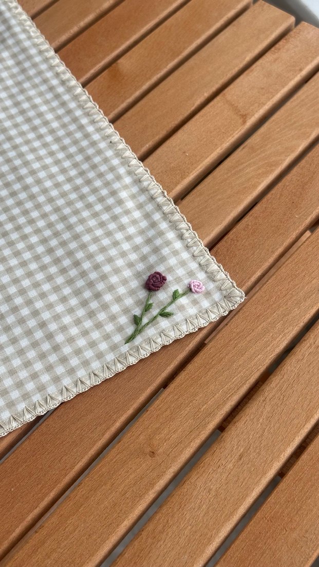 Çiçek işlemeli masa örtüsü kare