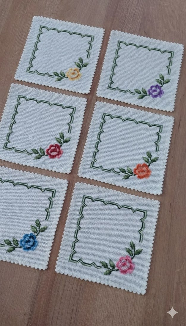 Çiçek İşlemeli Nakışlı Bardak Altlıkları