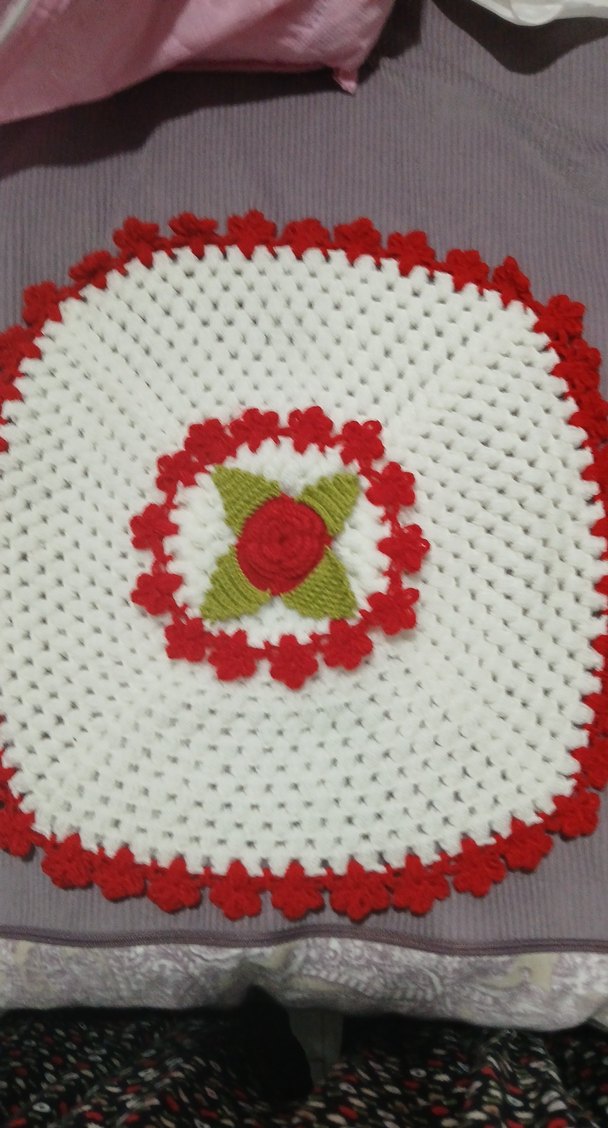 Renkli örgü bebek battaniyesi, kırmızı ve yeşil çiçek işlemeleriyle yumuşak ve sıcak tutar.