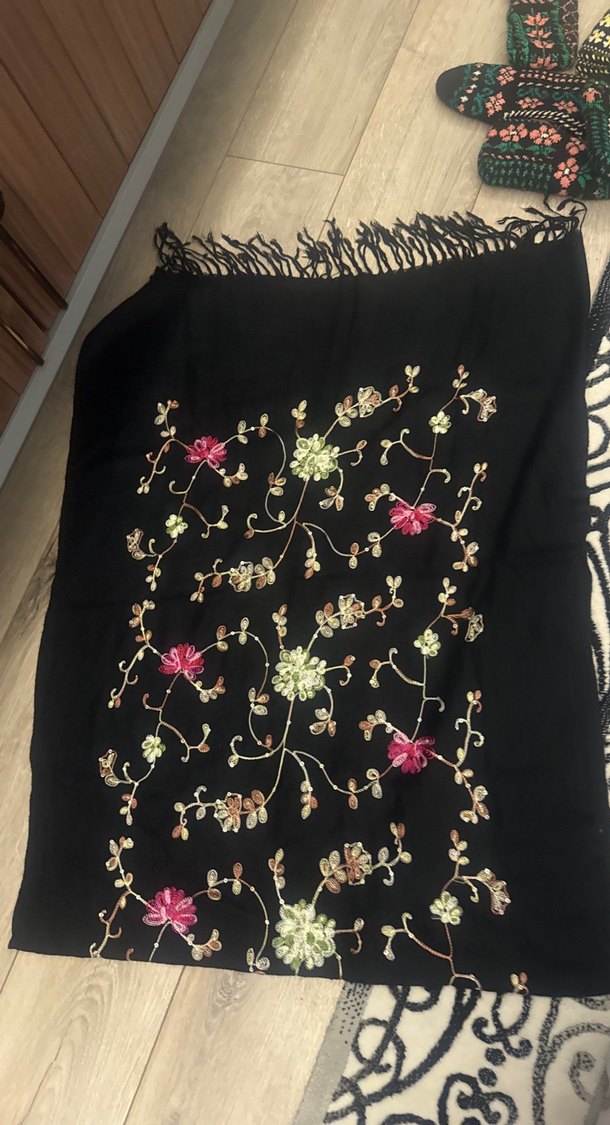 Çiçek İşlemeli Siyah Bohem Kadın Şal namaz örtüsü