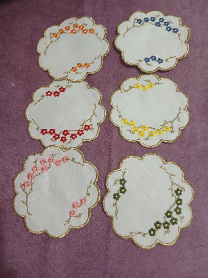 Çiçek İşlemeli Yuvarlak 6'lı Bardak Altlığı