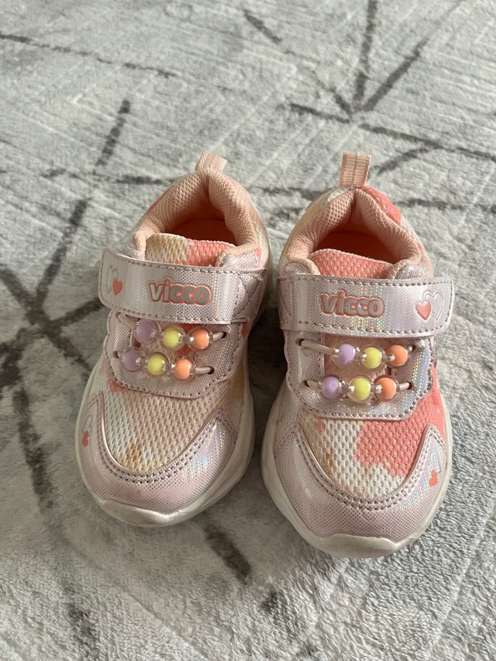 Sadece 2-3 kez giyildi. 22 numara hiç bir deforme yok Pembe, pastel tonlarda bağcıksız cırt cırtlı, lastik tabanlı kız çocuk spor ayakkabısıdır. Tie-dye desenlidir, sokak stili için uygundur.