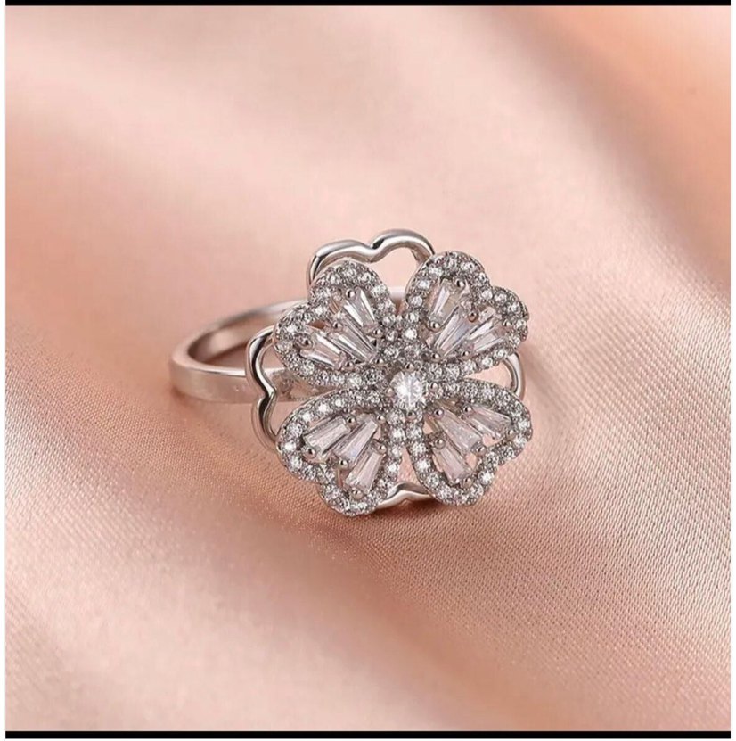 Modern klasik tarzda, pul işlemeli çiçek motifli beyaz ve renkli parlaklığa sahip düğün yüzüğü.