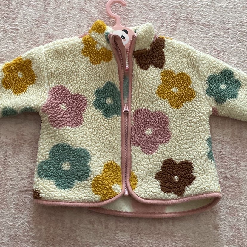Çiçek Nakışlı Renkli Kız Çocuk Polar Ceket