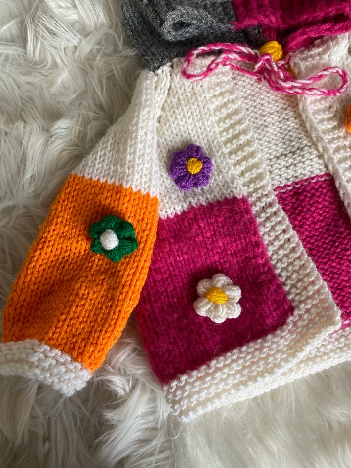 Çiçek Nakışlı Renkli Kız Hırka