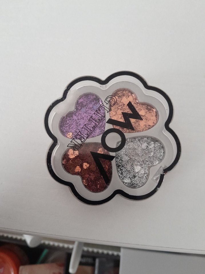 Çiçek şeklinde çok renkli göz farı paleti, mor, kahverengi, şeftali ve gümüş tonlarında koyu ve canlı renkler içerir.